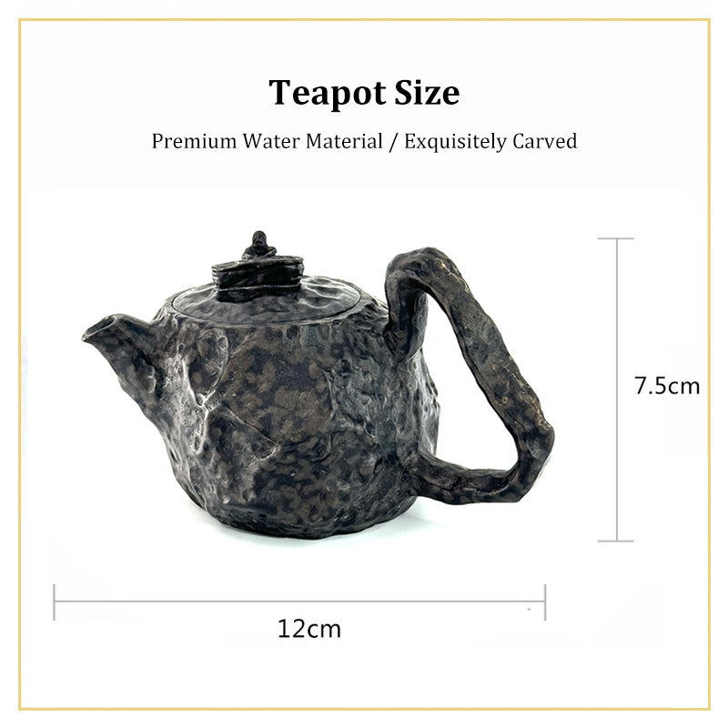 Its sculpted form blends strength and grace — the rough stone surface contrasts beautifully with its smooth lines and balanced proportions. Every curve is hand-carved, showing the artisan’s dedication to preserving the stone’s natural character while creating a functional piece for daily tea rituals.