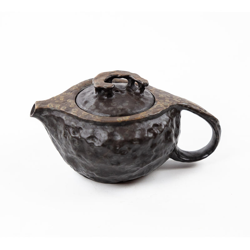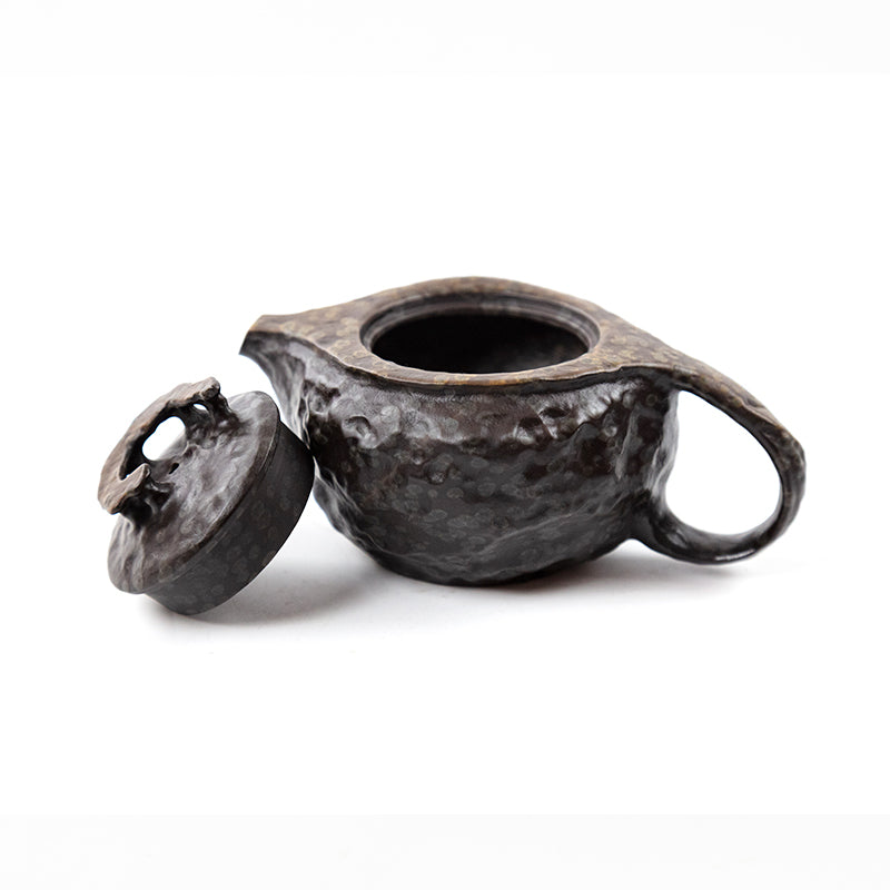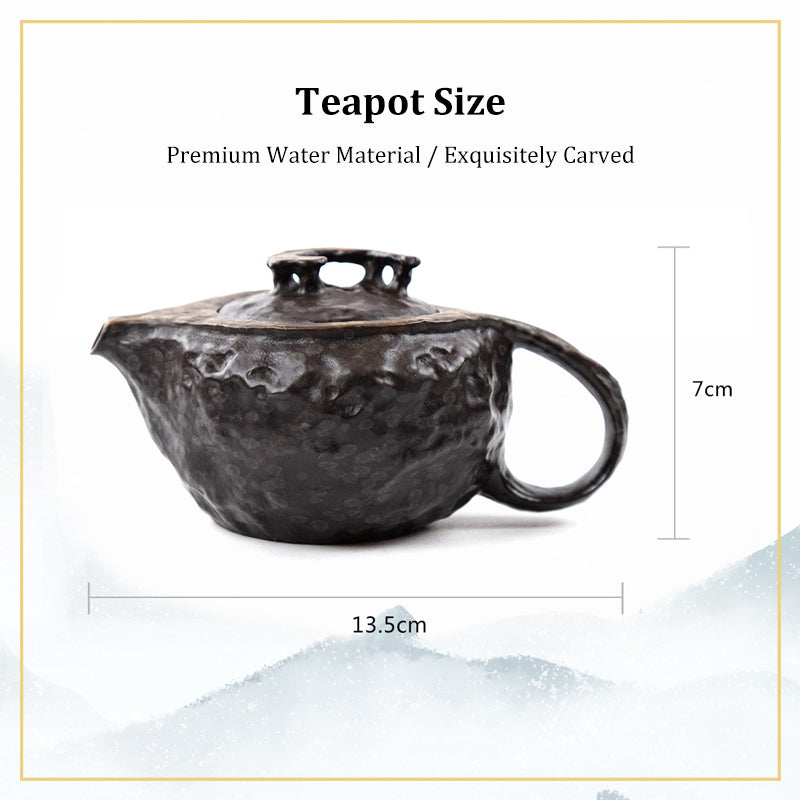 Unlike mass-produced wares, this teapot rejects mechanical uniformity. Its angular, raw silhouette is chiseled by hand, guided by the natural grain and mineral composition of the rock. The surface bears spontaneous hammer marks, each one a spontaneous stone painting—recording the artisan’s intuition and the rock’s response.